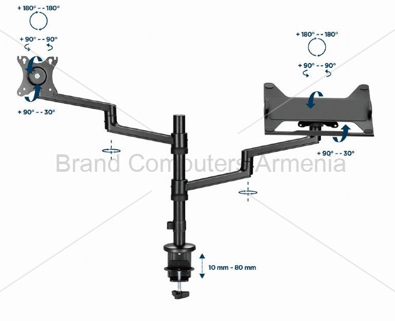| Max. desk thickness: Clamp: 10 ~ 80 mm, Grommet: 10 ~ 40 mm | |